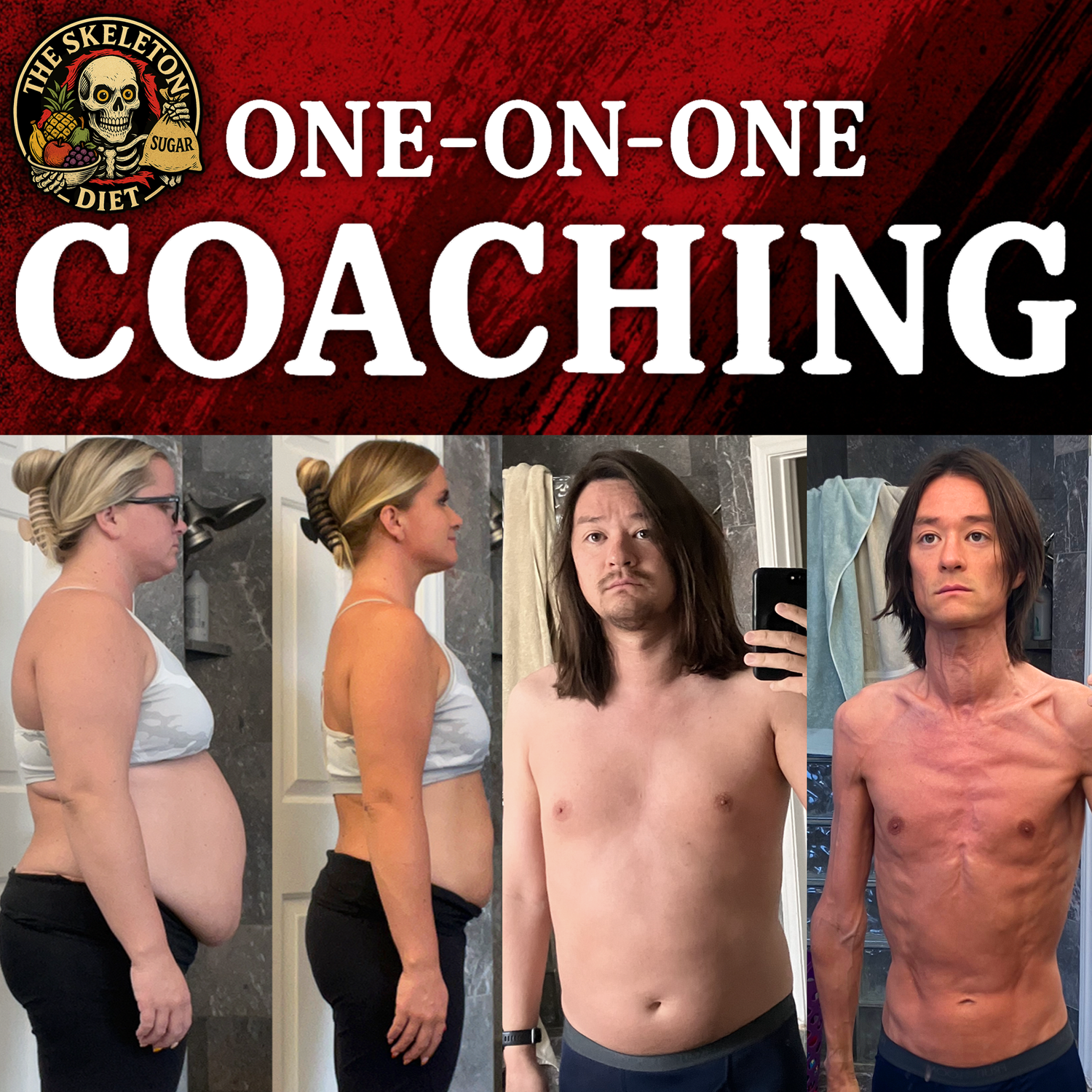 Get one-on-one support with The Skeleton Diet! Custom guidance, weekly check-ins, and direct access to your coach (aka me) to help you hit your goals and get to Skeleton City!